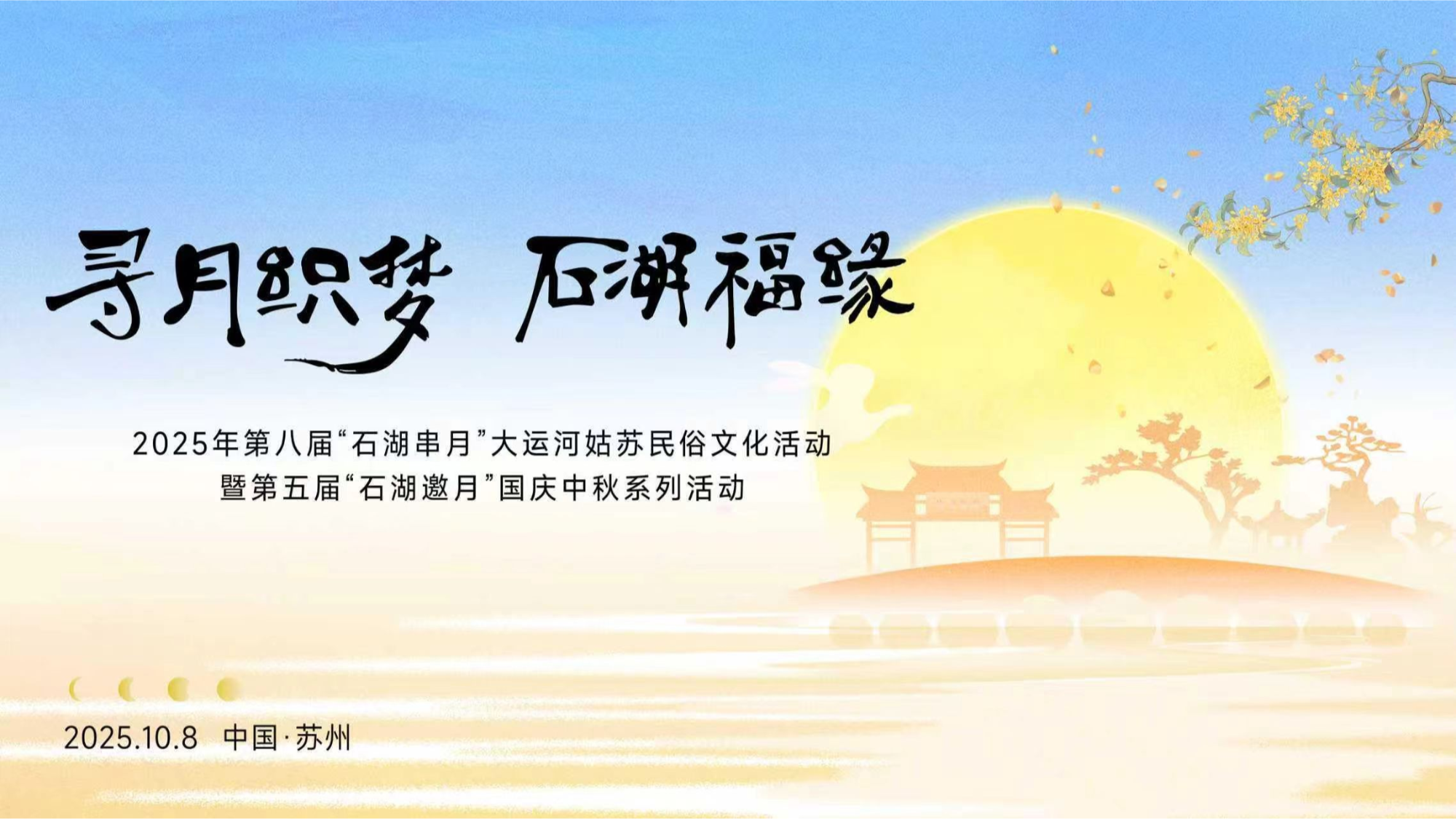 秋意渐浓,姑苏城内暗香浮动。当月光洒在千年运河上,一场别开生面的文化盛宴正在石湖之畔悄然酝酿。“我们的节日·中秋”2025年第八届“石湖串月”大运河